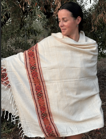 Este chal combina fibra de yak del Himalaya con algodón natural, creando un tejido suave, cálido, ligero y muy agradable al tacto. La mezcla aporta mayor durabilidad y estabilidad sin perder la calidez característica de la lana de yak.